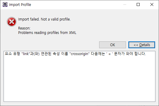 - Import를 선택하고 내려받은 XML 파일을 선택하고 Active Profile을 GoogleStyle로 설정